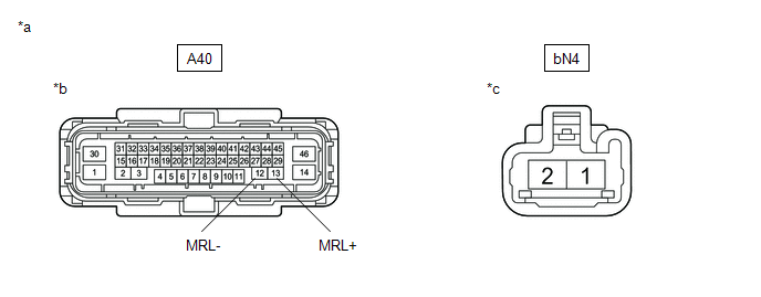 | bN4-1 or A40-12 (MRL-) - Body ground | Always | Below 1 V |