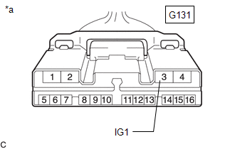 | G131-3 (IG1) - Body ground | Engine switch on (IG) | 11 to 14 V |