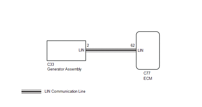 The ECM communicates with the generator assembly via LIN communication. If a LIN communication error is detected, the ECM stores this DTC.