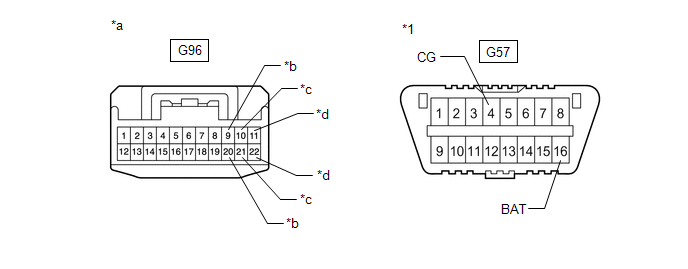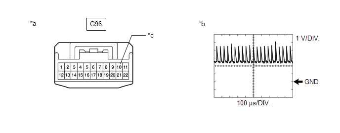 | *a | Front view of wire harness connector (to No. 17 CAN Junction Connector) | *b | Waveform |