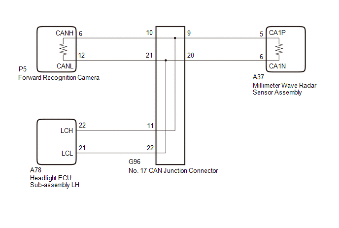 | 5. | CHECK CAN BUS LINES (MILLIMETER WAVE RADAR SENSOR ASSEMBLY - NO. 17 CAN JUNCTION CONNECTOR) |