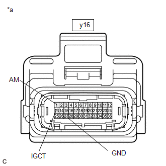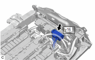 | (c) Disconnect the y16 battery ECU assembly connector. NOTICE: Before disconnecting the connector, check that it is not loose or disconnected. |