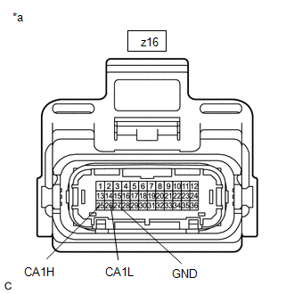| y16-25 (CA1H) - Body ground | Power switch on (IG) | Below 1 V |