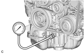 If the result is not as specified, check the quality of the engine oil and check the oil paths for clogging. Repair or replace if necessary. If the engine oil pressure is still not as specified, check the timing chain cover assembly.