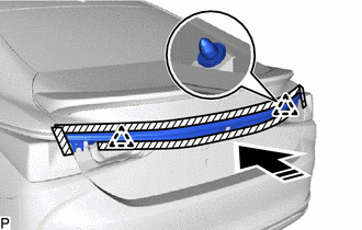 (d) Disengage the 2 clips and remove the luggage compartment door outside garnish sub-assembly as shown in the illustration.