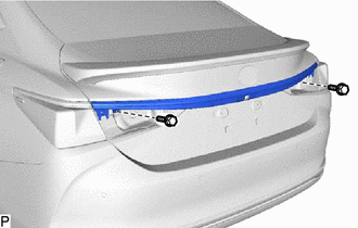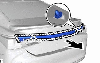 (d) Disengage the 2 clips and remove the luggage compartment door outside garnish sub-assembly as shown in the illustration.