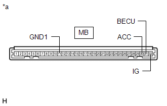 | MB-32 (IG) - Body ground | Power switch on (IG) | 11 to 14 V |