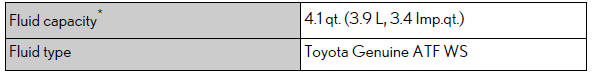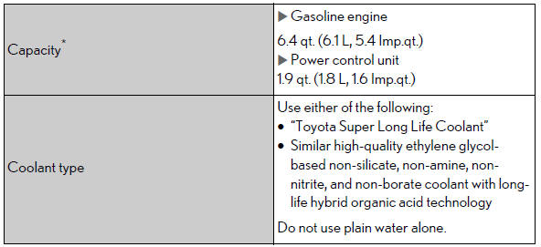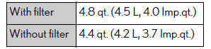 *: The engine oil capacity is a reference quantity to be used when changing the engine oil. Warm up the engine and turn off the hybrid system, wait more than 5 minutes, and check the oil level on the dipstick.