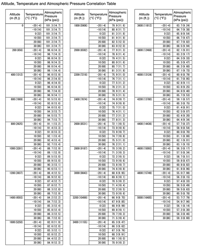 (f) Using the following table, determine the normal atmospheric pressure for the current altitude and temperature.
