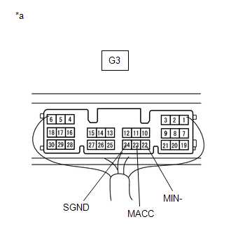 | G3-23 (MACC) - Body ground | Power switch on (ACC) | 4 to 6 V |