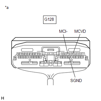 | G128-5 (MCVD) - Body ground | Power switch on (ACC) | 4 to 6 V |