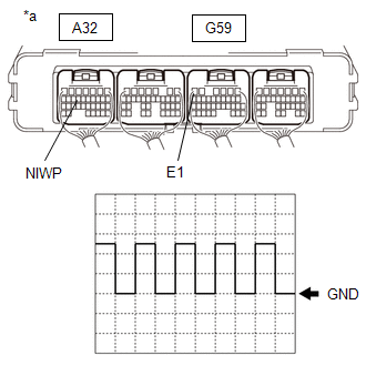 | (e) Connect an oscilloscope between the hybrid vehicle control ECU terminals specified in the table below, and measure the waveform.