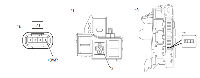 | *a | Front view of wire harness connector (to Inverter Water Pump Assembly) | - | - |