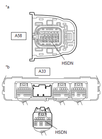 (b) Disconnect the A58 inverter with converter assembly connector.