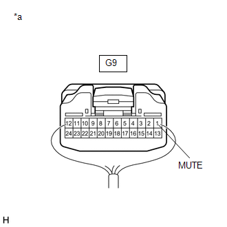 | G6-25 (MUT1) or G9-1 (MUTE) - Body ground | Always | 10 kΩ or higher |
