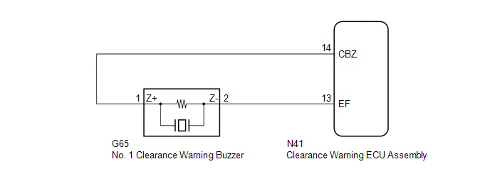 | 2. | CHECK HARNESS AND CONNECTOR (CLEARANCE WARNING ECU ASSEMBLY - NO. 1 CLEARANCE WARNING BUZZER) |