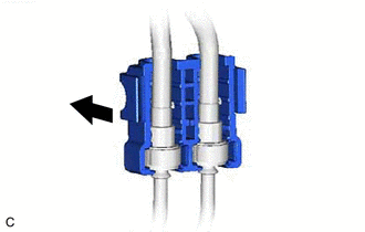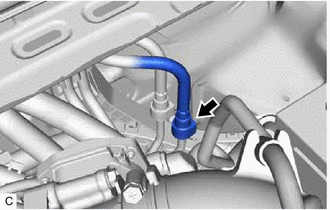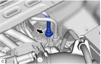 | (e) Disconnect the No. 2 fuel tube sub-assembly (for Direct Injection). (1) Disconnect the No. 2 fuel tube sub-assembly from the fuel pipe. Click here |