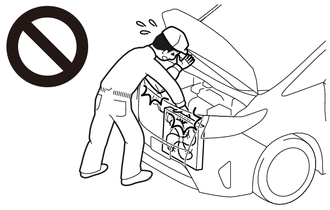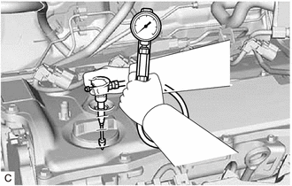 | (k) Check the cylinder compression pressure. (1) Insert a compression gauge into the spark plug hole. (2) Connect the Techstream to the DLC3. (3) Turn the power switch on (IG). (4) Turn the Techstream on. NOTICE: Check the HV battery voltage in the Data List to ensure that the battery is fully charged. (5) Enter the following menus: Powertrain / Hybrid Control / Active Test / Compression Test / ON. Powertrain > Hybrid Control > Active Test