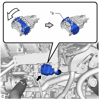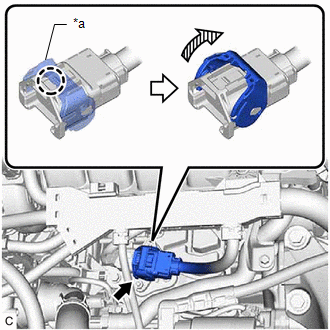 | (l) Connect the fuel injector connector (for Direct Injection) and push down the lock lever to engage the claw as shown in the illustration. |