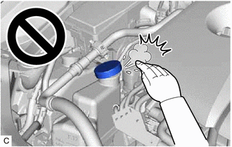 | (a) Inspect the reserve tank cap. (1) If there are water stains or foreign matter on the O-ring, clean it with water and finger scouring. NOTICE: Do not use any tools. (2) Check that the O-ring is not deformed, cracked, or damaged. (3) Check that the O-ring is not swollen. |