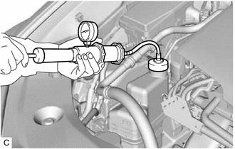 | (c) Install a radiator cap tester to the inverter reserve tank assembly. |