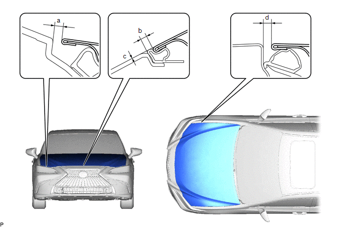 (a) Check that the clearance measurements of areas a through d are within each standard range.
