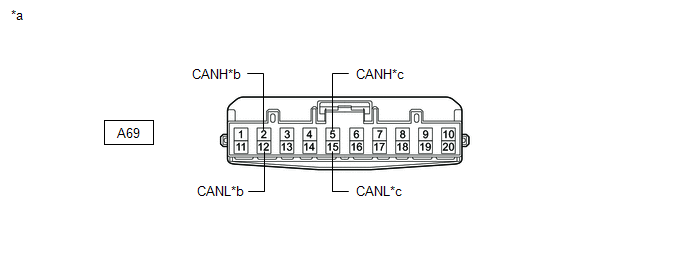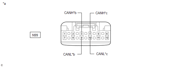 | *a | Front view of wire harness connector (to No. 4 CAN Junction Connector) | *b | to No. 2 CAN Junction Connector |