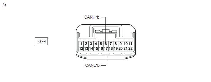 | *a | Front view of wire harness connector (to No. 7 CAN Junction Connector) | *b | to Central Gateway ECU (Network Gateway ECU) |