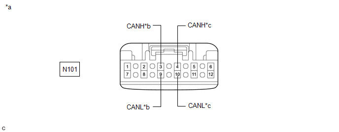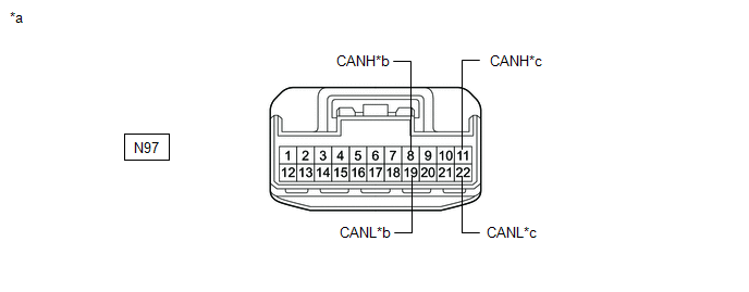 | *a | Front view of wire harness connector (to No. 8 CAN Junction Connector) | *b | to No. 5 CAN Junction Connector |