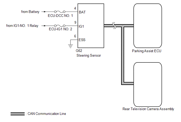 This DTC is stored if the rear television camera assembly receives a signal via CAN communication from the steering sensor that indicates a power supply system problem.