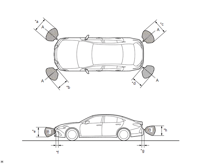 (2) Move a 60 mm (2.4 in.) diameter pole near each sensor to measure its detection range. When measuring the longest-range detection of a front center sensor or rear center sensor, use a wall or equivalent.