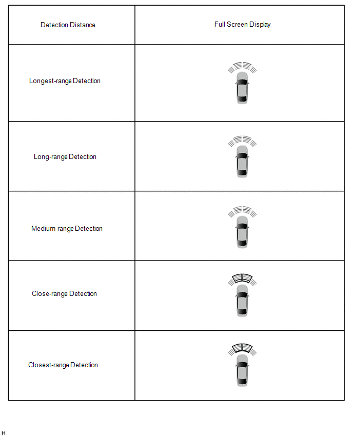 | Front Center Sensor (front center ultrasonic sensor) | In any position other than P or R |