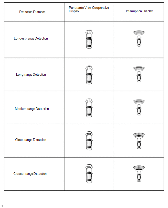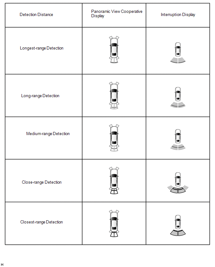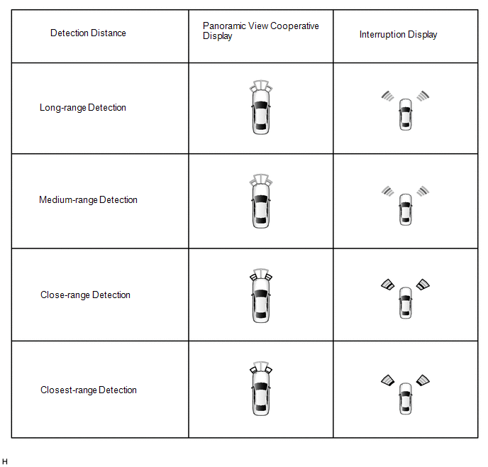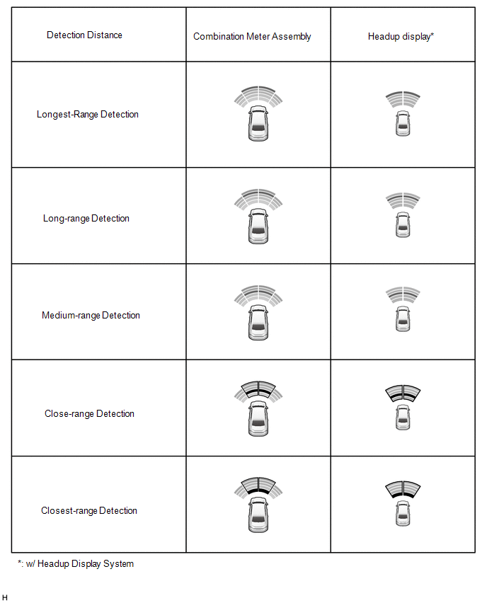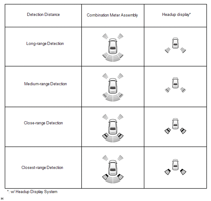Multi-display, Combination meter assembly, Headup display (w/ Headup Display System) and Buzzer| Detection Range | During Judgment | Obstacle |