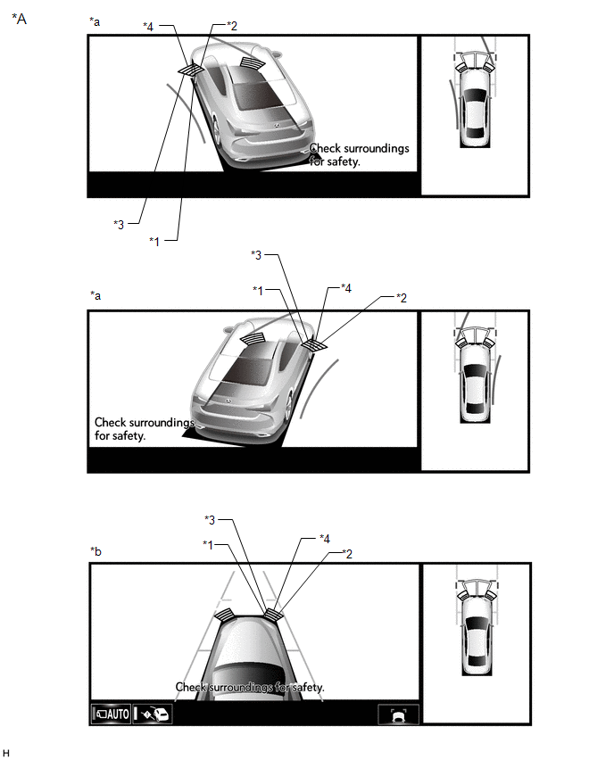 | *a | Panoramic View and Cornering View Display | *b | Panoramic View and Side Clearance View Display |