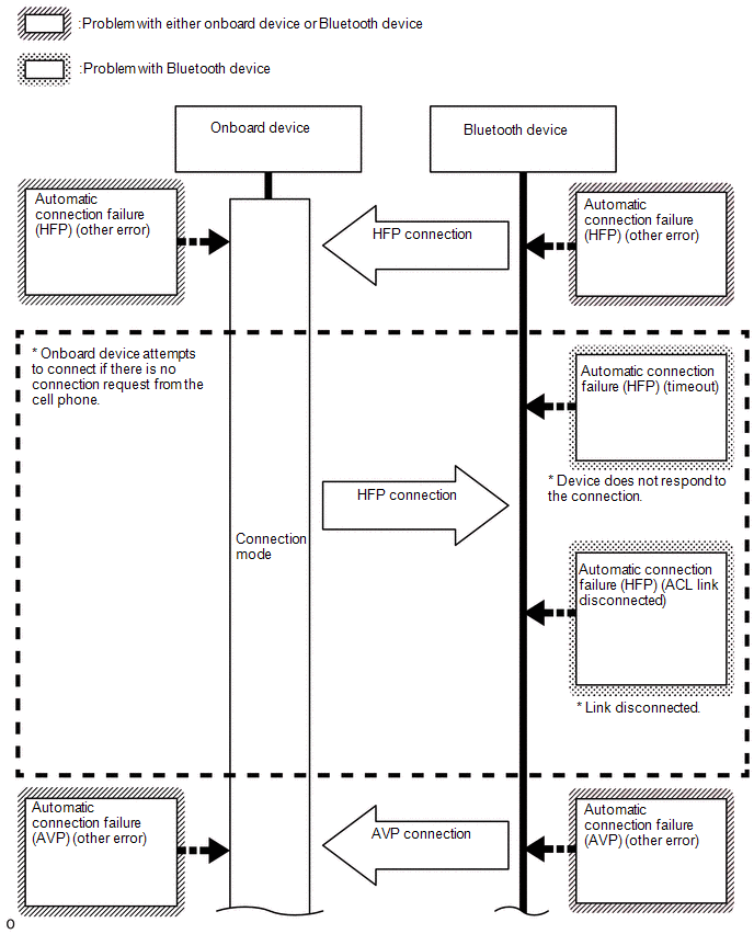 | Connect Failure (HFP) ("Android Auto") (w/ "Android Auto" Function) | Time Out | "Bluetooth" connection could not be established properly. |