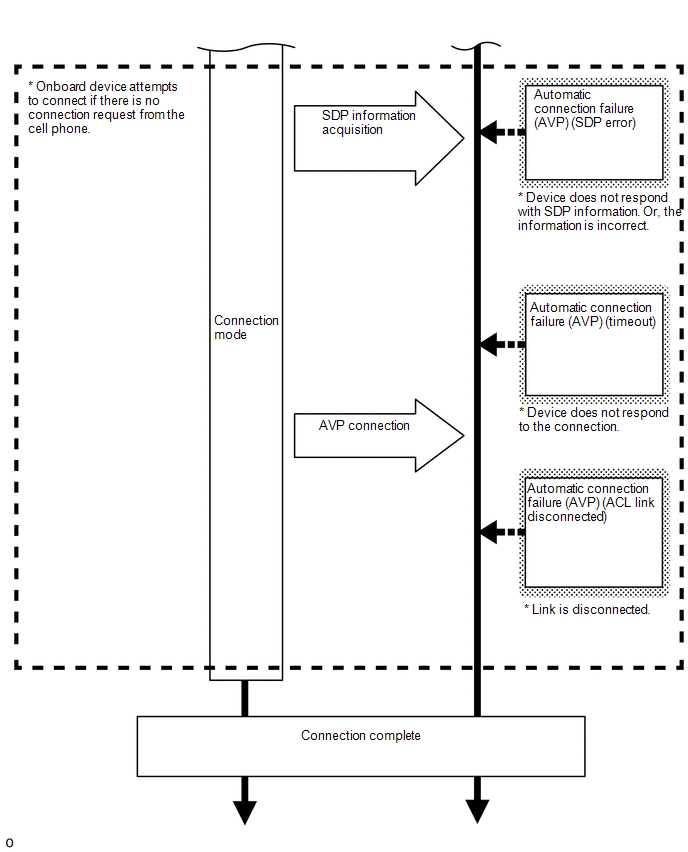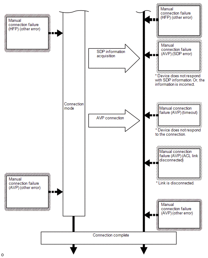 | Manual Connect Cancel (AVP) | No Error | Connection was interrupted by operating the radio receiver assembly or "Bluetooth" device. | - |