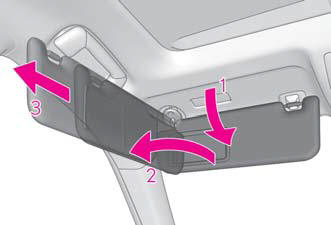 ■ Rear door sunshades Pull the tab of the rear door sunshade and hook the sunshade on the anchors.