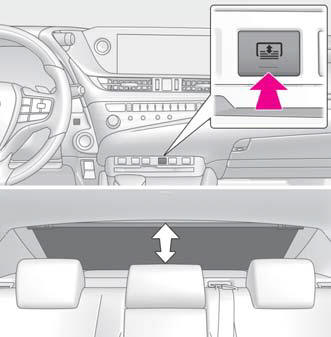 ■ Rear sunshade The rear sunshade can be raised and lowered by operating the button shown below.