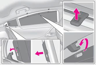 To retract the rear door sunshade, unhook the sunshade and retract it slowly.