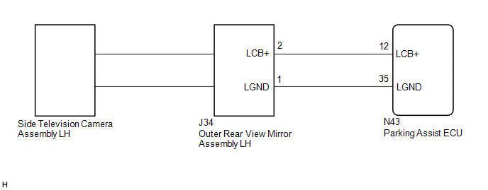 | 2. | CHECK HARNESS AND CONNECTOR (PARKING ASSIST ECU - OUTER REAR VIEW MIRROR ASSEMBLY LH) |