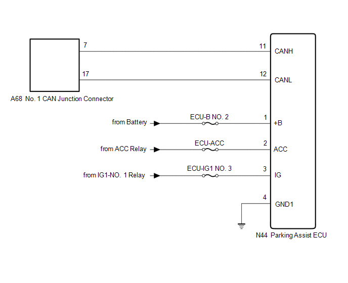 | 1. | CHECK FOR OPEN IN CAN BUS LINES (PARKING ASSIST ECU BRANCH LINE) |