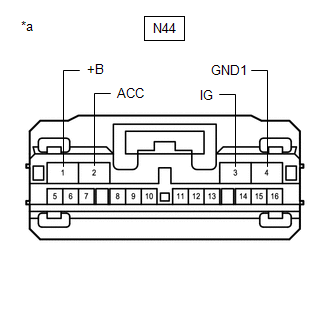 | N44-2 (ACC) - Body ground | Engine switch on (ACC) | 11 to 14 V |