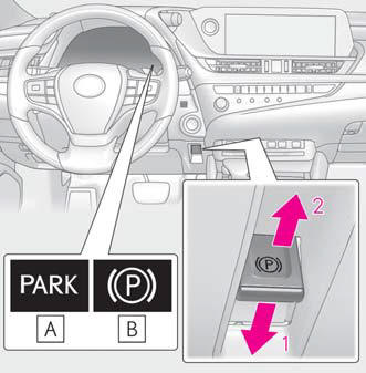 In automatic mode, the parking brake can be set or released automatically according to shift lever operation. Also, even in automatic mode, the parking brake can be set or released manually.
