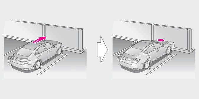 ■Intuitive parking assist buzzer Regardless of whether the intuitive parking assist system is enabled or not, if the Parking Support Brake function (static objects) is enabled, the front or rear sensors detect an object and brake control is performed, the intuitive parking assist buzzer will sound to notify the driver of the approximate distance to the object.