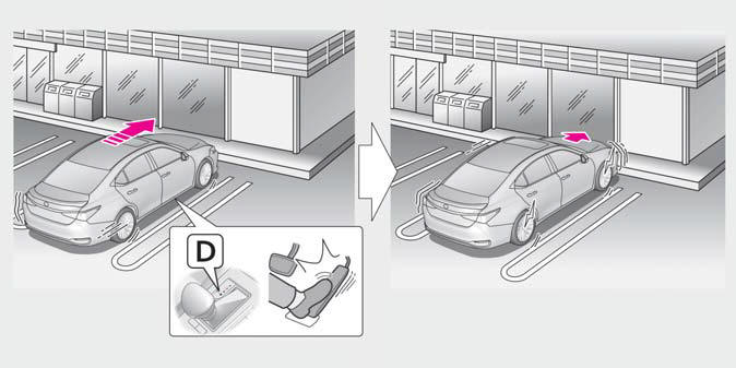 This function will operate in situations such as the following if an object is detected in the traveling direction of the vehicle.