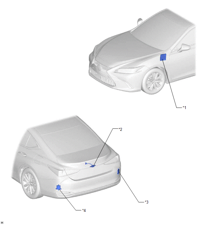 | *3 | BLIND SPOT MONITOR SENSOR RH (w/ Blind Spot Monitor System) | *4 | BLIND SPOT MONITOR SENSOR LH (w/ Blind Spot Monitor System) |