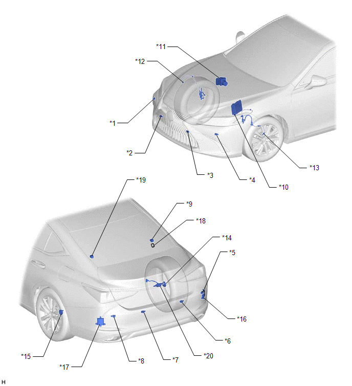 | *3 | FRONT CENTER ULTRASONIC SENSOR LH | *4 | FRONT CORNER ULTRASONIC SENSOR LH |