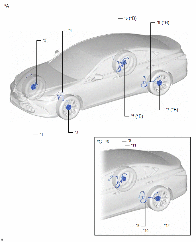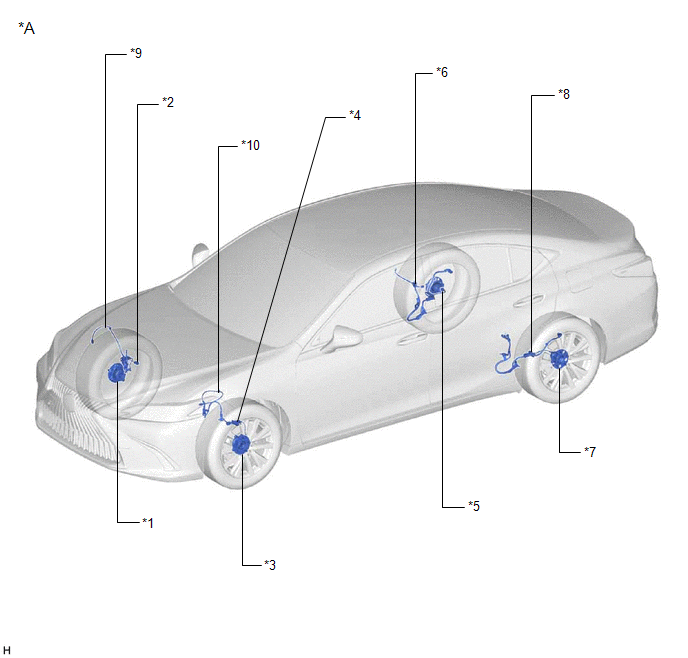 | *9 | REAR SPEED SENSOR RH | *10 | REAR SPEED SENSOR LH |