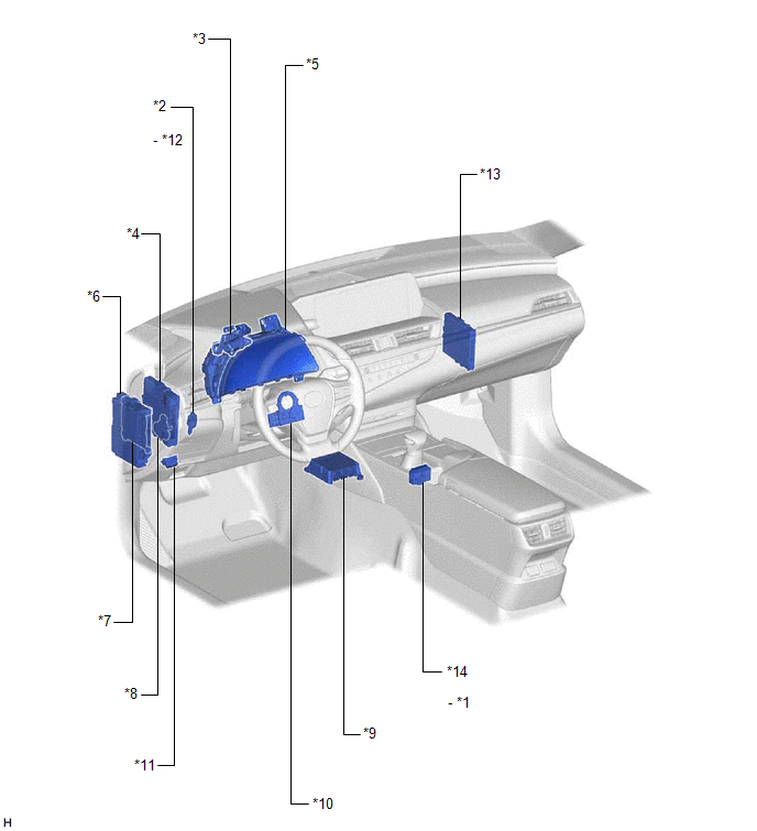 | *13 | CERTIFICATION ECU (SMART KEY ECU ASSEMBLY) | *14 | NO. 3 COMBINATION SWITCH ASSEMBLY |