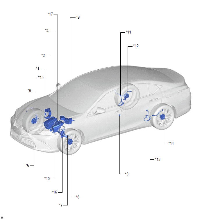 | *9 | AIRBAG ECU ASSEMBLY - YAW RATE AND ACCELERATION SENSOR | *10 | STEERING ANGLE SENSOR |